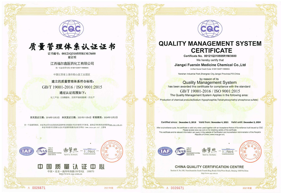 熱門關(guān)鍵詞:次磷酸鈉 四羥甲基硫酸磷 四羥甲基氯化磷 四羥甲基氯化磷脲縮體 四羥甲基硫酸磷脲縮體 次磷酸江西福爾鑫醫(yī)藥化工有限公司